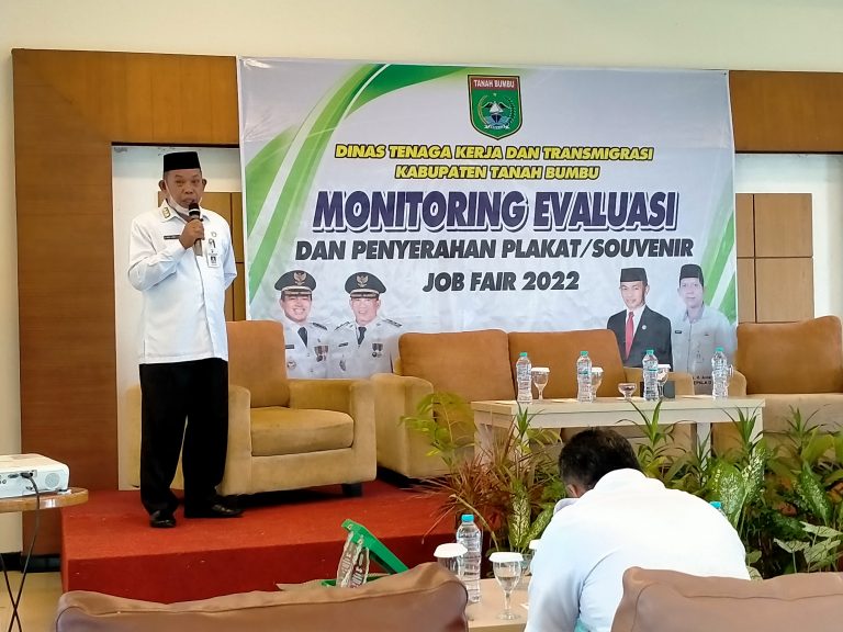 Hal tersebut disampaikan Kepala Disnakertrans Avian Noor melalui Kepala Bidang Tenaga Kerja Yamani saat melaksanakan monitoring evaluasi (Monev) job fair 2022 dan penyerahan plakat/souvernir di Soraja Hall 1 lantai 4 Hotel Ebony Batulicin, Rabu (30/11/2022).