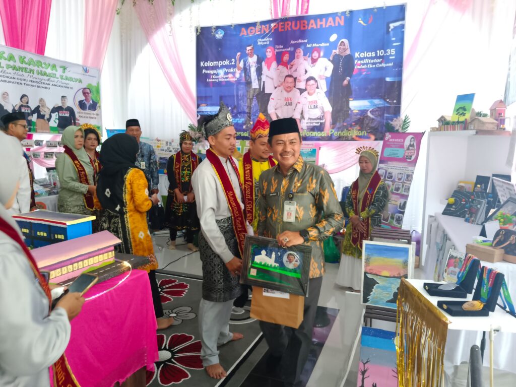 Bupati menghampiri semua stand pameran inovasi pendidikan yang dibuat olah Calon Guru Penggerak yang merupakan upaya memberikan pembelajaran yang inovatif dan kreatif agar pendidikan di Tanah Bumbu semakin baik lagi.