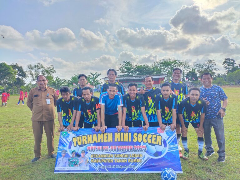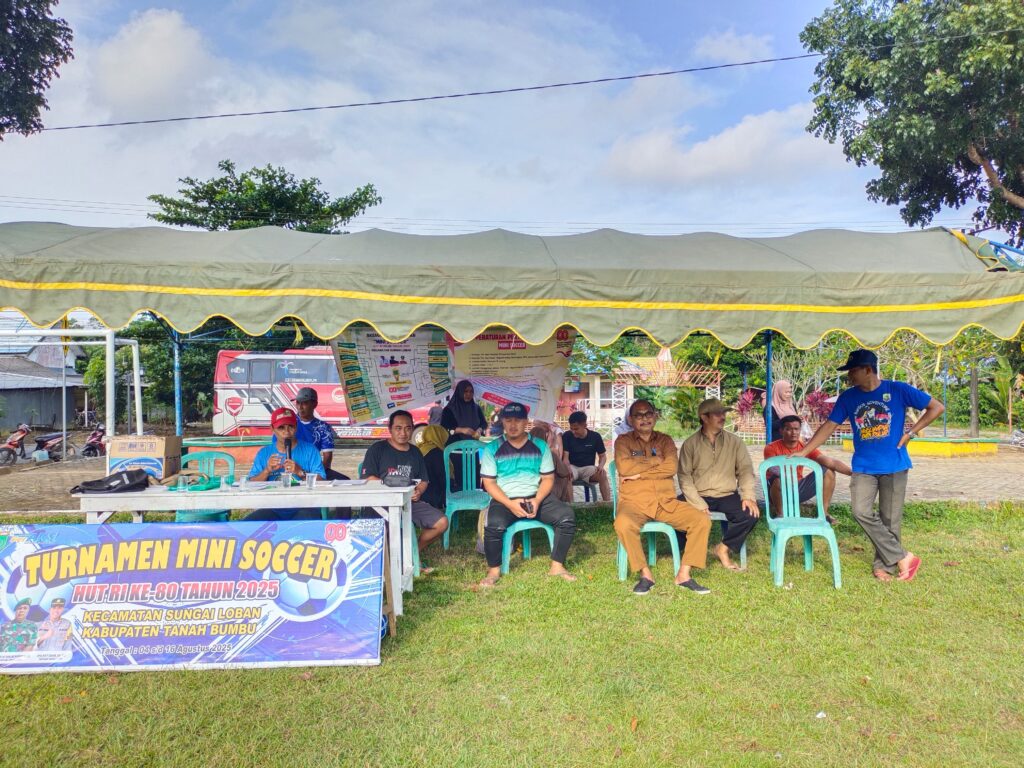 Pelaksanaan Mini Soccer Tingkat Kecamatan Sungai Loban digelar dalam rangka memeriahkan HUT RI ke – 80 Tahun 2025, yang diikuti oleh 24 Tim terdiri dari Forkopimcam, Instansi Vertikal, Sekolah dan 17 Desa se – Kecamatan Sungai Loban.