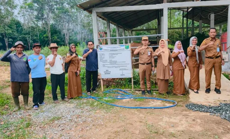 Dalam kegiatan tersebut, Camat Angsana Taryono, bersama rombongan meninjau kondisi kandang, kesehatan ternak, serta sistem pengelolaan yang diterapkan oleh kelompok penerima manfaat.